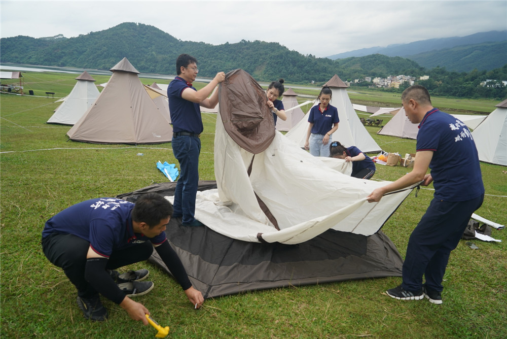 游戲中,員工們進(jìn)行了搭帳篷比賽、“千里一線牽”、廚藝大比拼、猜歌名等游戲。大家仔細(xì)地觀看教練搭建帳篷的過程,討論著策略,保證以最快的速度高質(zhì)量搭建帳篷;在“千里一線牽”的比拼中,每個(gè)團(tuán)隊(duì)通力協(xié)作完成運(yùn)送乒乓球的任務(wù),考驗(yàn)了員工的協(xié)調(diào)性和團(tuán)隊(duì)協(xié)作能力,大家紛紛為隊(duì)伍吶喊助威,經(jīng)過不斷地摸索和實(shí)踐,每個(gè)隊(duì)都出色地完成了任務(wù)。廚藝比拼環(huán)節(jié)中,員工們大展身手,炮制出一道道色香味俱全的硬菜,試菜員投票選出最佳菜品。