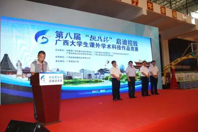 5月27日,由廣西啟迪與共青團(tuán)廣西區(qū)委、廣西自治區(qū)教育廳、科技廳、科協(xié)以及學(xué)聯(lián)會(huì)共同合作舉辦的第八屆“挑戰(zhàn)杯”啟迪控股廣西大學(xué)生課外學(xué)術(shù)科技作品競賽在廣西科技大學(xué)隆重開幕。共青團(tuán)廣西區(qū)委書記李楚、自治區(qū)高校工委副書記滿昌學(xué)、科協(xié)副主席陳大克、廣西科技大學(xué)校長李思敏、廣西啟迪總裁王洪新應(yīng)邀出席并作為開幕嘉賓致詞。