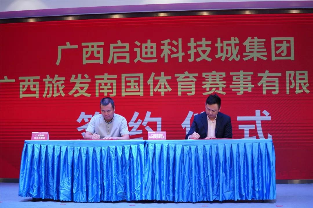 自治區(qū)體育局黨組成員、副局長盧意文,廣西旅游發(fā)展集團(tuán)有限公司黨委委員、紀(jì)委書記、自治區(qū)監(jiān)委駐集團(tuán)公司監(jiān)察專員莫桂友,廣西旅游發(fā)展集團(tuán)有限公司黨委委員、副總經(jīng)理、總法律顧問陳銘釗,共青團(tuán)廣西區(qū)委社會聯(lián)絡(luò)部部長單振風(fēng),南寧市體育局黨組成員、副局長莫樹森,廣西社會體育運(yùn)動發(fā)展中心主任林敬華,啟迪控股股份有限公司總裁助理、廣西啟迪科技城集團(tuán)總裁宋鐵農(nóng),廣西旅發(fā)南國體育投資集團(tuán)有限公司副總經(jīng)理馮浩江,南寧青秀山風(fēng)景名勝旅游區(qū)管委會黨政辦主任韋偉文出席儀式。