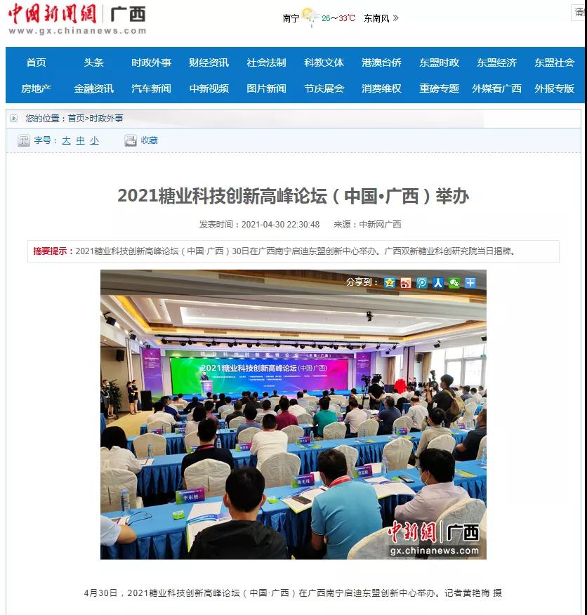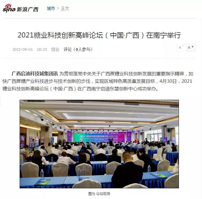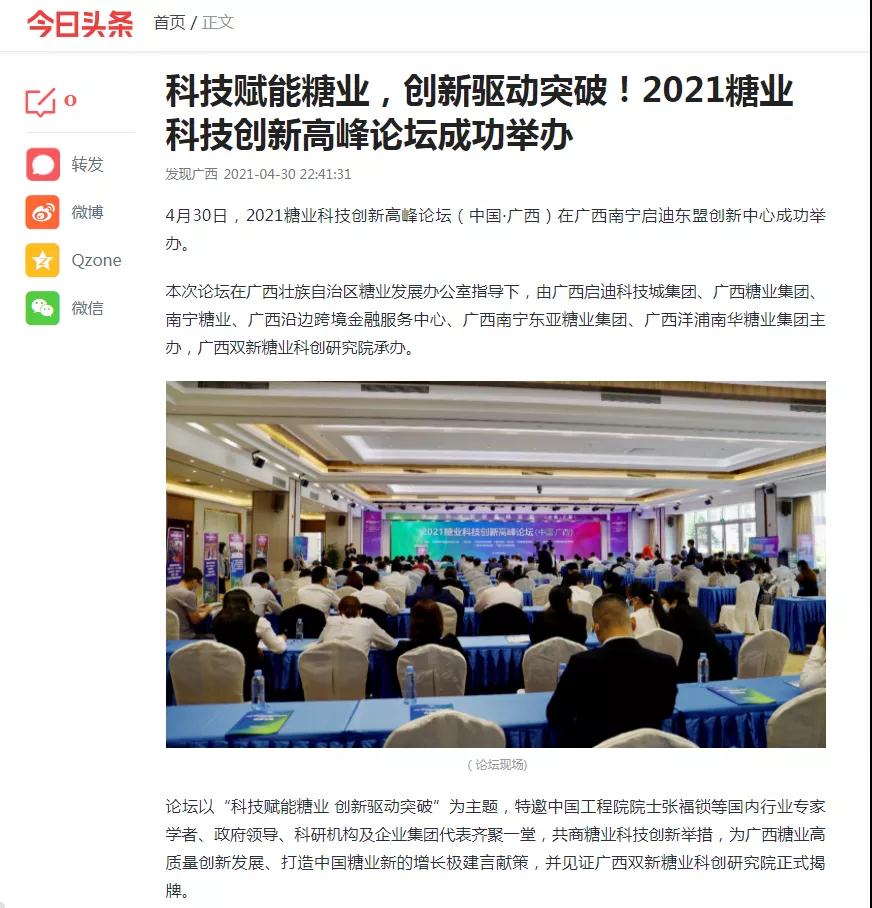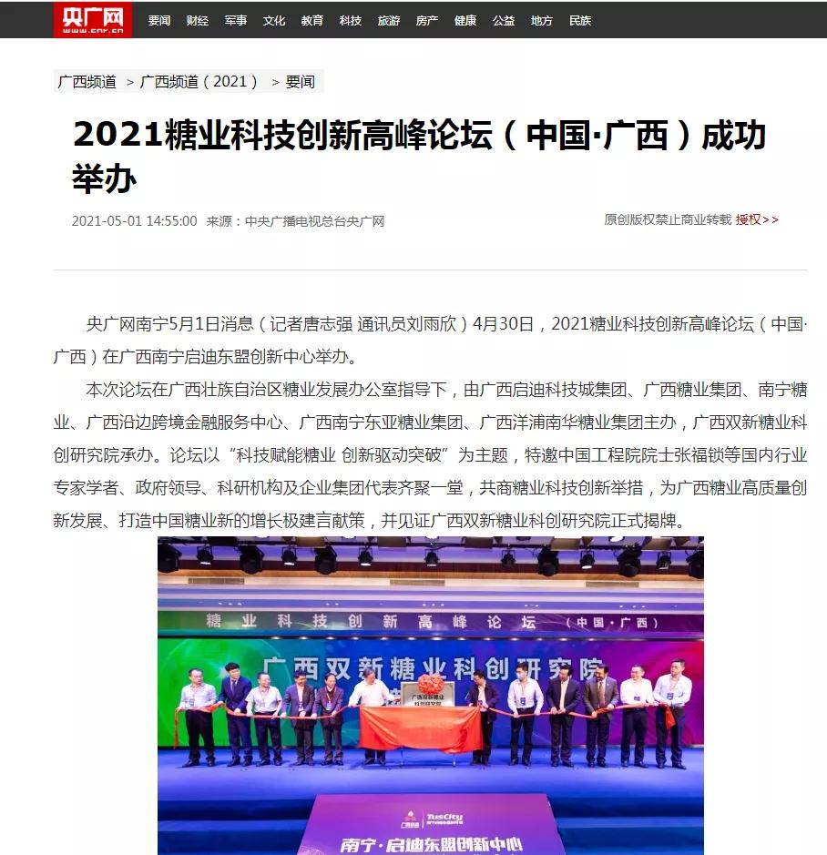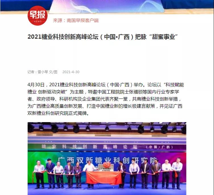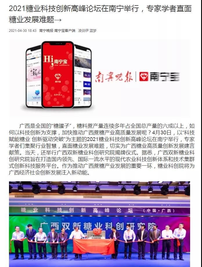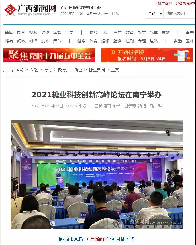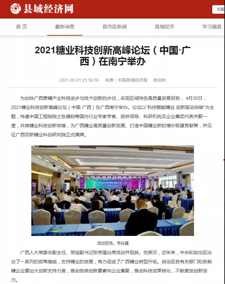 媒體聚焦 | 20多家媒體報道2021糖業(yè)科技創(chuàng)新高峰論壇(中國·廣西)盛況