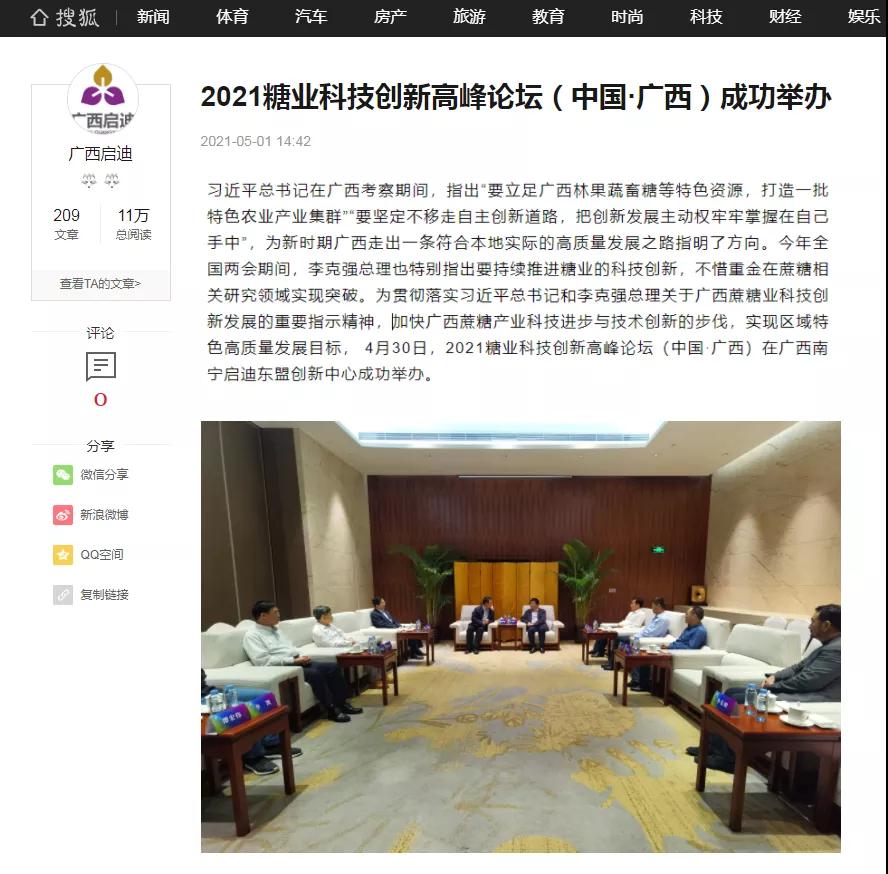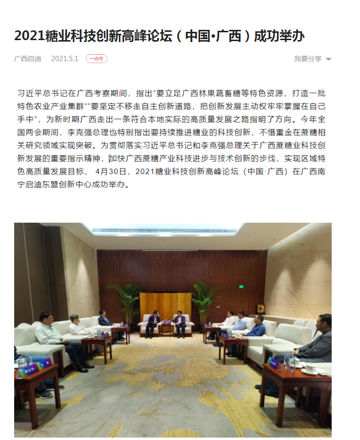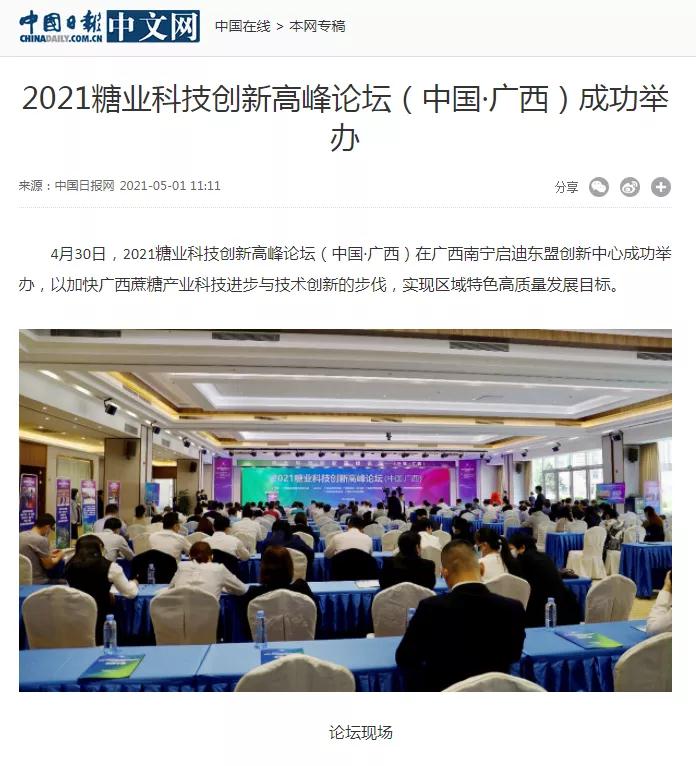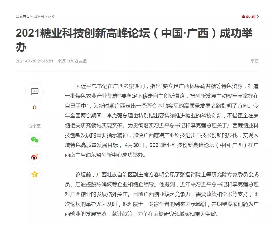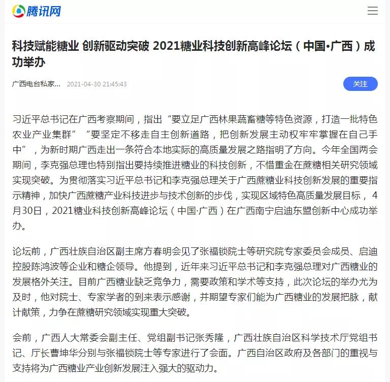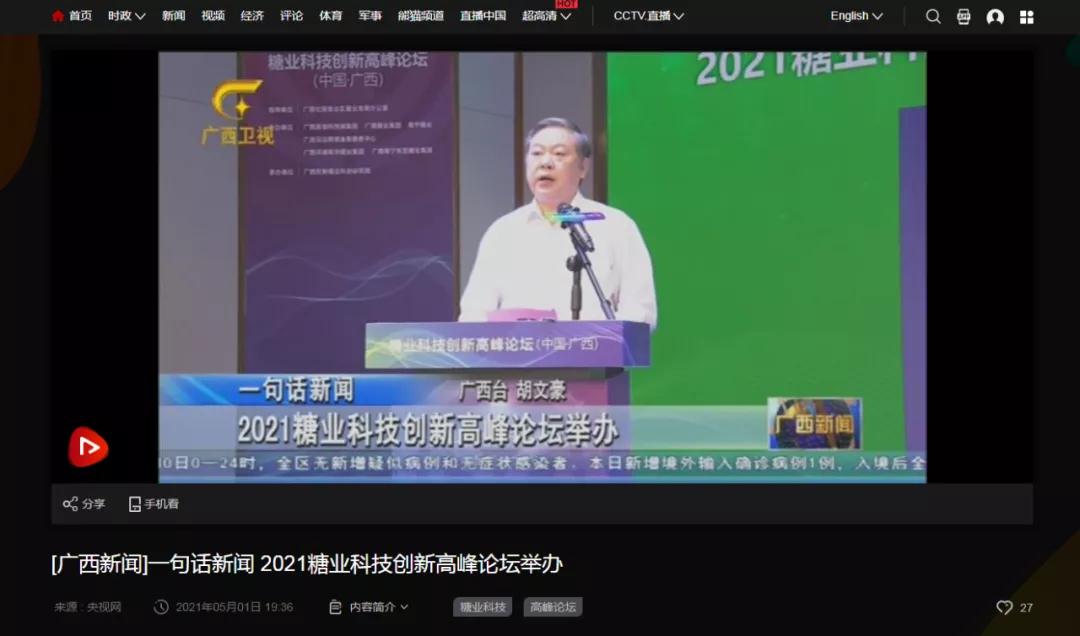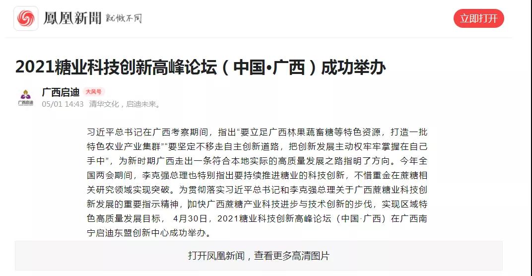 媒體聚焦 | 20多家媒體報道2021糖業(yè)科技創(chuàng)新高峰論壇(中國·廣西)盛況