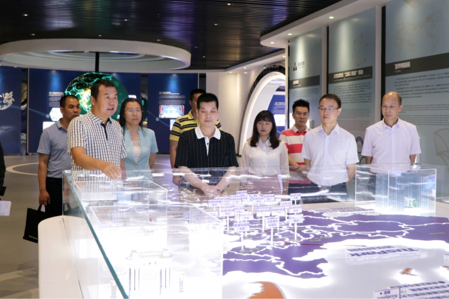 ▲ 考察團(tuán)一行參觀考察南寧·啟迪東盟創(chuàng)新中心數(shù)字展廳