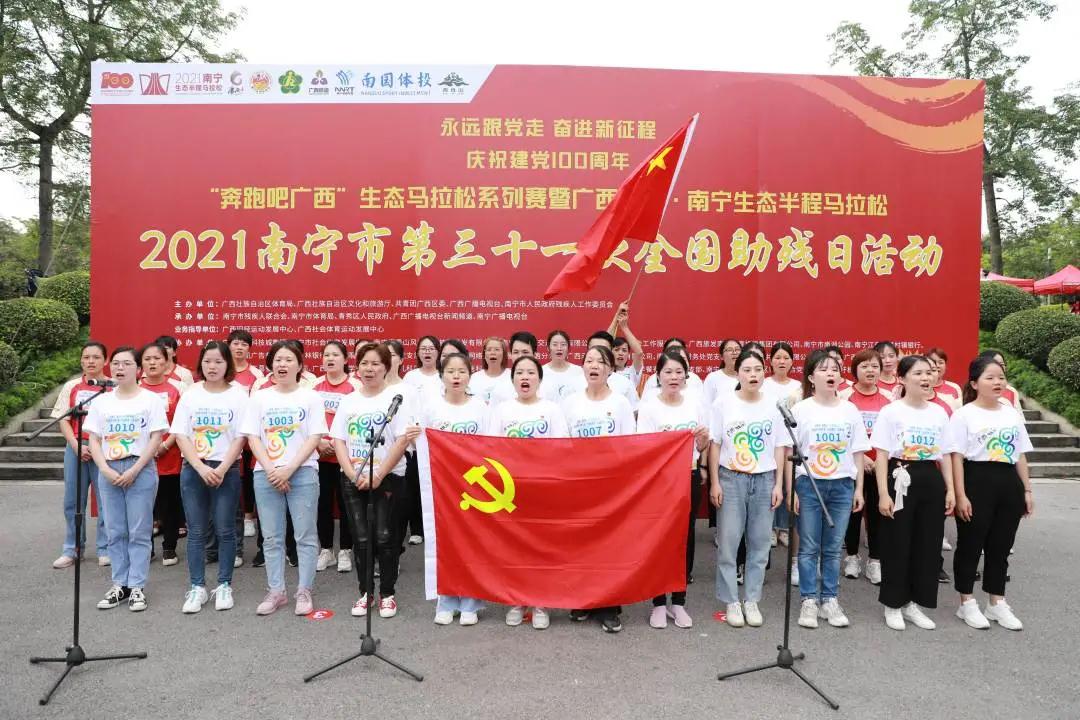 活動(dòng)最后,全體人員合唱《我和我的祖國(guó)》,本次活動(dòng)在歌聲中圓滿結(jié)束。今年是中國(guó)共產(chǎn)黨建黨100周年,我們也將在六月迎來第71個(gè)六一國(guó)際兒童節(jié)。這次匯集社會(huì)各界人士愛意的公益跑,以運(yùn)動(dòng)之名,為公益開跑,不僅是各愛心單位為2021南寧市第三十一次全國(guó)助殘日的嘹亮發(fā)聲,也是2021“奔跑吧廣西”生態(tài)馬拉松系列賽暨廣西啟迪·南寧生態(tài)半程馬拉松賽獻(xiàn)禮建黨百年的最好禮物。
