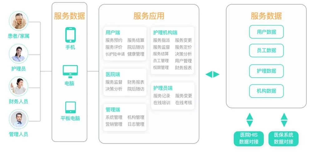 攜手長護平臺瞄準了行業(yè)當前普遍存在的專業(yè)培訓缺乏,管理體系混亂、收費標準不一、社會保障不足、養(yǎng)老床位供不應求、服務內(nèi)容單一等問題,以在線護理為切入,向醫(yī)療行業(yè)信息化系統(tǒng)進行延伸。平臺的服務監(jiān)督、院后管理、移動管理、智能報表、決策分析等核心功能,具有多方在線透明化、服務流程標準化、服務信息數(shù)字化等優(yōu)勢。旨在打造醫(yī)療行業(yè)的共享平臺,構(gòu)建一個完整的商業(yè)閉環(huán),為顧客、定點醫(yī)療機構(gòu)、照護人員提供更專業(yè)、更貼心、更規(guī)范、更快捷的智能服務。
