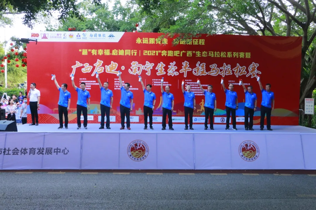 本次賽事嚴(yán)格落實(shí)自治區(qū)、市各級(jí)疫情防控工作要求,由廣西壯族自治區(qū)體育局、廣西壯族自治區(qū)文化和旅游廳、共青團(tuán)廣西區(qū)委、廣西廣播電視臺(tái)主辦,南寧市體育局、廣西南寧青秀山風(fēng)景名勝旅游區(qū)管委會(huì)、廣西旅游發(fā)展集團(tuán)有限公司、廣西廣播電視臺(tái)新聞?lì)l道承辦,廣西啟迪科技城集團(tuán)、南寧市社會(huì)體育發(fā)展中心、廣西旅發(fā)南國(guó)體育投資集團(tuán)有限公司、南寧市軌道交通集團(tuán)有限責(zé)任公司、南寧青秀山風(fēng)景名勝旅游開發(fā)有限責(zé)任公司協(xié)辦,廣西旅發(fā)南國(guó)體育賽事有限公司運(yùn)營(yíng)。啟迪控股總裁助理、廣西啟迪科技城集團(tuán)總裁宋鐵農(nóng)出席開賽儀式,為千名跑友加油助威,共同見證了這場(chǎng)運(yùn)動(dòng)盛宴。作為2021“奔跑吧廣西”系列馬拉松賽之一,20家中央媒體、區(qū)內(nèi)主流媒體進(jìn)行報(bào)道,人民網(wǎng)對(duì)賽事進(jìn)行全程圖文直播。