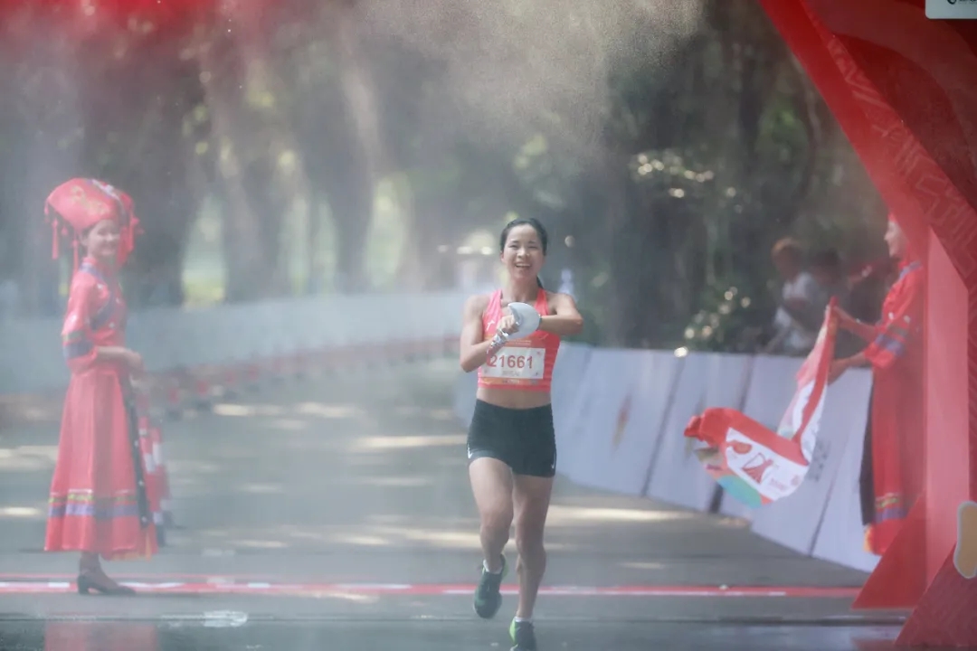 上午8時(shí)16分,男子組選手馬水旺率先沖破終點(diǎn)線,以1小時(shí)16分08秒的成績(jī)?nèi)〉媚凶咏M第一名。邱遠(yuǎn)青、熊正強(qiáng)分別以1小時(shí)16分26秒、1小時(shí)17分03秒的成績(jī)位列男子組第二名、第三名。女子組第一名被陳麗琴以1小時(shí)24分47秒的成績(jī)摘得。周思琪、陸間分別以1小時(shí)32分07秒、1小時(shí)35分10秒的成績(jī)位列女子組第二名、第三名。