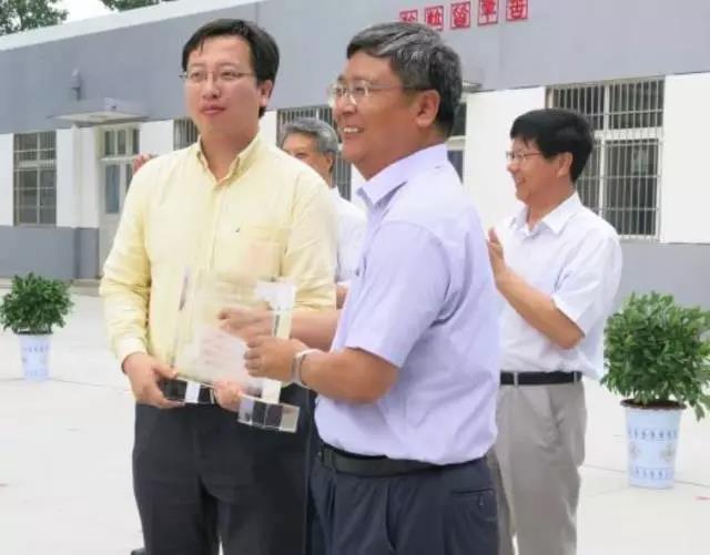 ▲ 阜寧縣教育局局長蔡衛(wèi)國向啟迪控股代表贈送“啟迪樓”模型