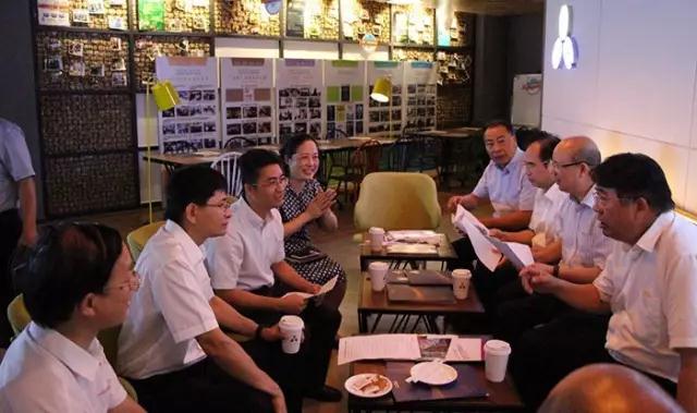 ▲ 藍(lán)天立常務(wù)副主席(左二)一行在啟迪K-lab Coffee了解相關(guān)工作情況