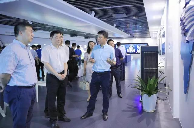 ▲ 趙長山董事長(左二)一行參觀考察啟迪控股數(shù)字展廳