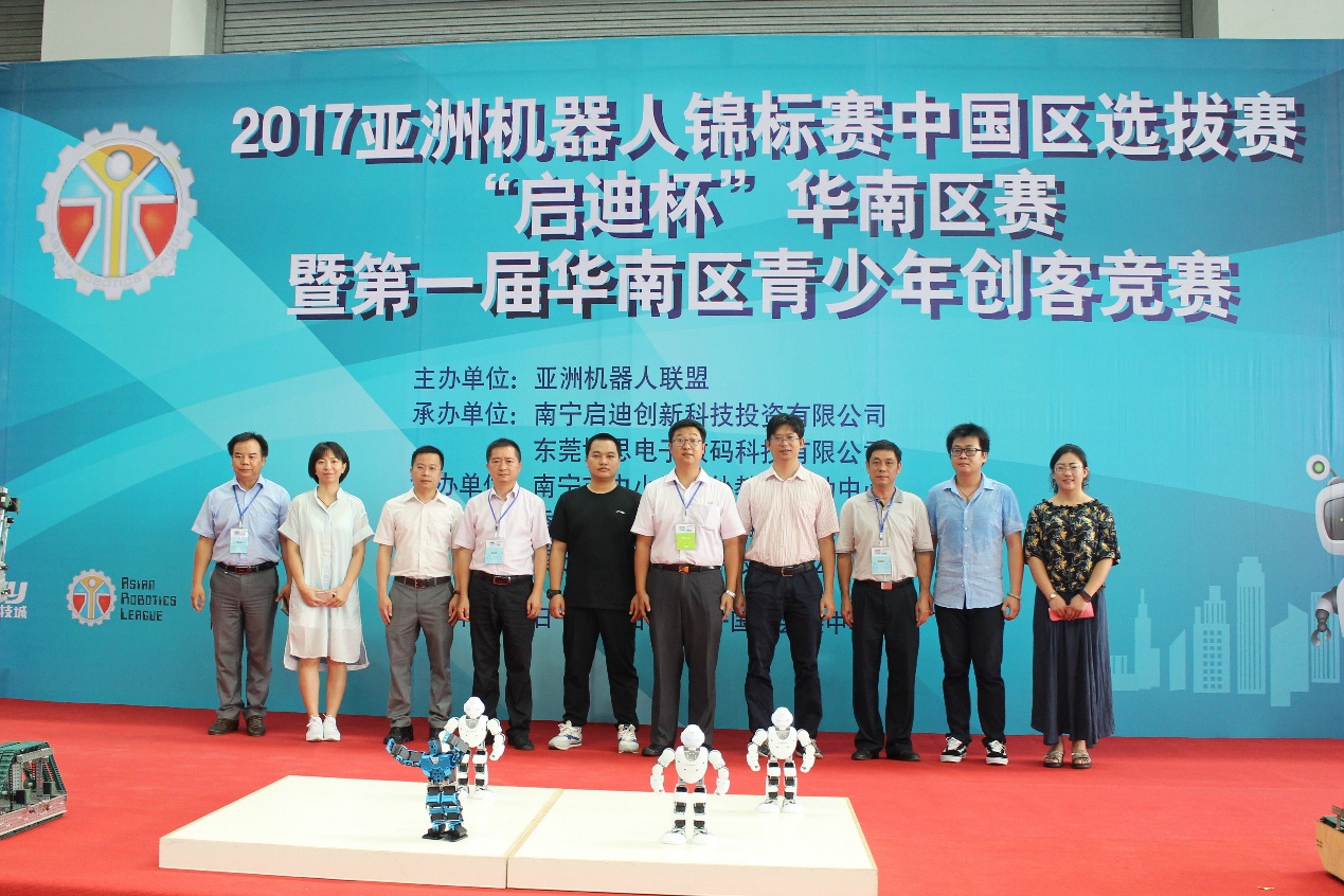 8月12日至14日,2017亞洲機器人錦標(biāo)賽中國區(qū)選拔賽——“啟迪杯”華南區(qū)賽在南寧國際會展中心隆重舉行,本次賽事由亞洲機器人聯(lián)盟(Asian Robotics League)主辦,廣西啟迪、東莞博思電子數(shù)碼科技有限公司聯(lián)合承辦。廣西啟迪副總裁曾慶、亞洲機器人聯(lián)盟中國區(qū)主席曾慶龍、廣西科技館青少年項目科長韋文潮等領(lǐng)導(dǎo)應(yīng)邀出席。