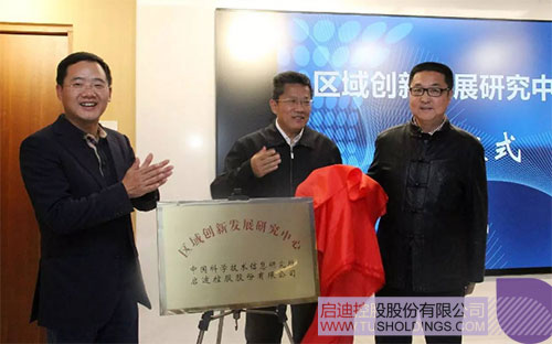 基于前期科技部與啟迪控股的協(xié)商與溝通,25日下午,臧明院長在清華科技園主持了“區(qū)域創(chuàng)新發(fā)展研究中心”成立儀式。中國科技信息研究所副所長郭鐵城、中國科技信息研究所政策與戰(zhàn)略研究中心主任程如煙、王濟武董事長、余健副司長出席儀式并講話。