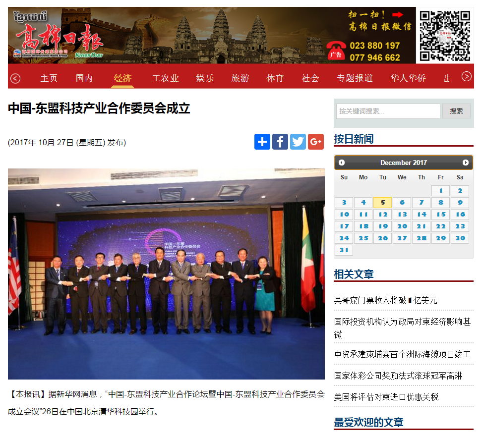 中國(guó)-東盟科技產(chǎn)業(yè)合作委員會(huì)成立|高棉日?qǐng)?bào)