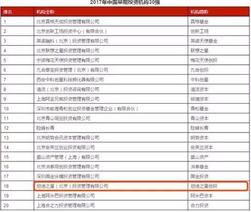 近日,中國股權(quán)投資領(lǐng)域最權(quán)威的排名機(jī)構(gòu)清科研究中心發(fā)布了清科2017中國股權(quán)投資年度排名,啟迪之星創(chuàng)投榮獲“2017年中國早期投資機(jī)構(gòu)30強(qiáng)”第18名。而在此前同樣由清科研究中心發(fā)布的2017中國硬科技領(lǐng)域投資機(jī)構(gòu)30強(qiáng)榜單中,啟迪之星創(chuàng)投榜上有名,排名第18位。