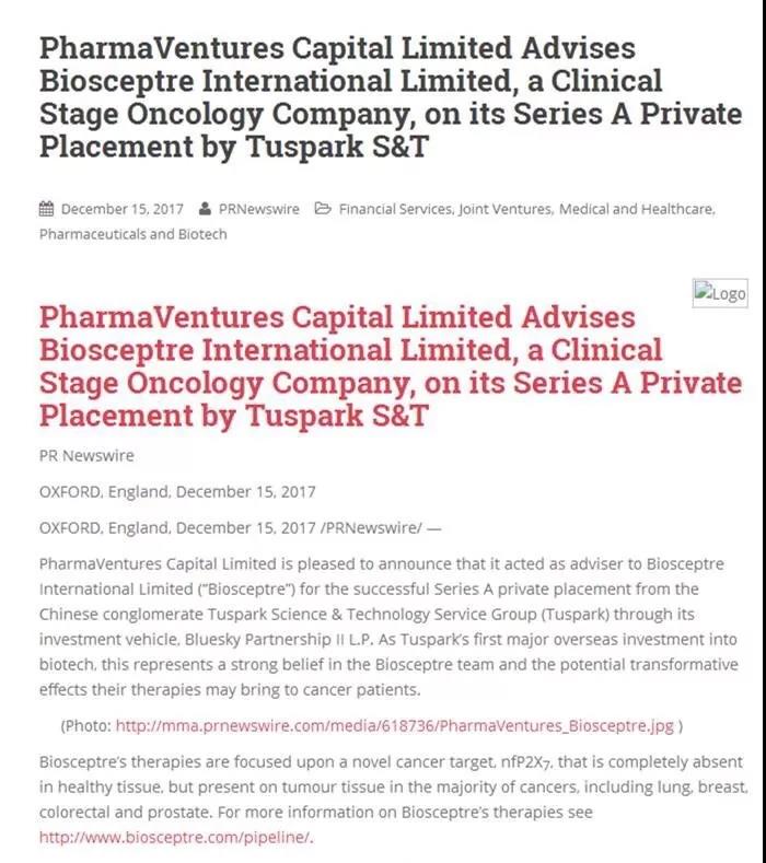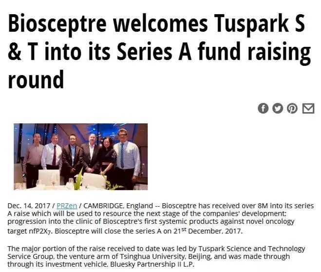 Kltv報(bào)道:2017年12月14日,英格蘭Biosceptre已獲得了由中國(guó)啟迪科服集團(tuán)主導(dǎo)的投資,并通過(guò)投資工具Bluesky Partnership II LP 完成交易。