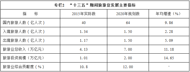 專欄2 “十三五”期間旅游業(yè)發(fā)展主要指標