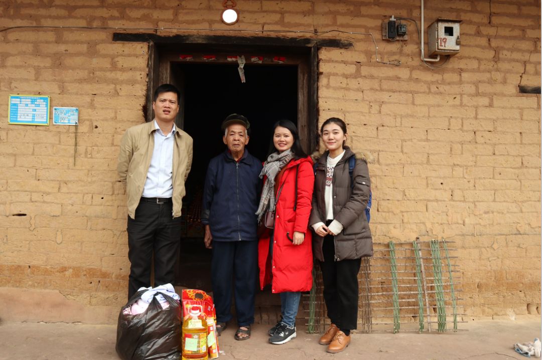 活動(dòng)當(dāng)天,廣西啟迪一行沿著蜿蜒的山路驅(qū)車前往崇左市寧明縣的那楠鄉(xiāng)馱象村,村里道路情況較差只能步行,愛(ài)心活動(dòng)成員們提著愛(ài)心物資走過(guò)泥路,在村子里步行,將暖暖的心意送到貧困戶手上。來(lái)到貧困戶莫漢英老人家中時(shí),看到老人家依然住在用黃土磚建的破舊房子里,老人的老伴不久前剛過(guò)世,子女在外打工,但家庭收入微薄,生活條件困難,廣西啟迪的成員為他送上了愛(ài)心物資和溫暖的祝福,老人家比劃著新衣服十分開(kāi)心,并向送溫暖的成員表示感謝。
