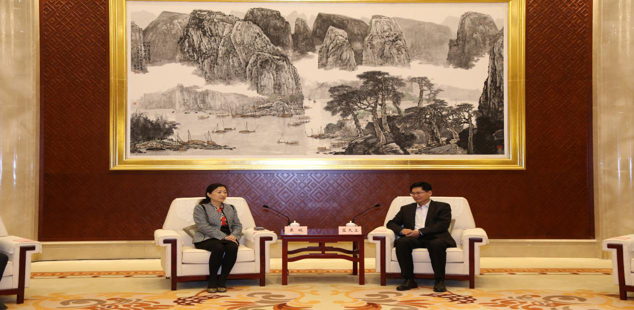 (圖為啟迪控股總裁袁桅與廣西自治區(qū)人大常委會(huì)副主任、自治區(qū)總工會(huì)主席王躍飛舉行會(huì)談)