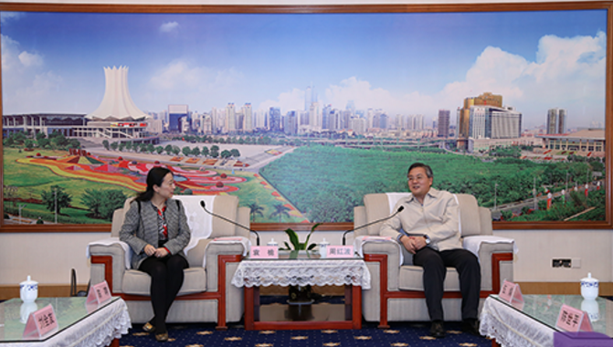 (圖為啟迪控股總裁袁桅與南寧市市長周紅波會(huì)談)