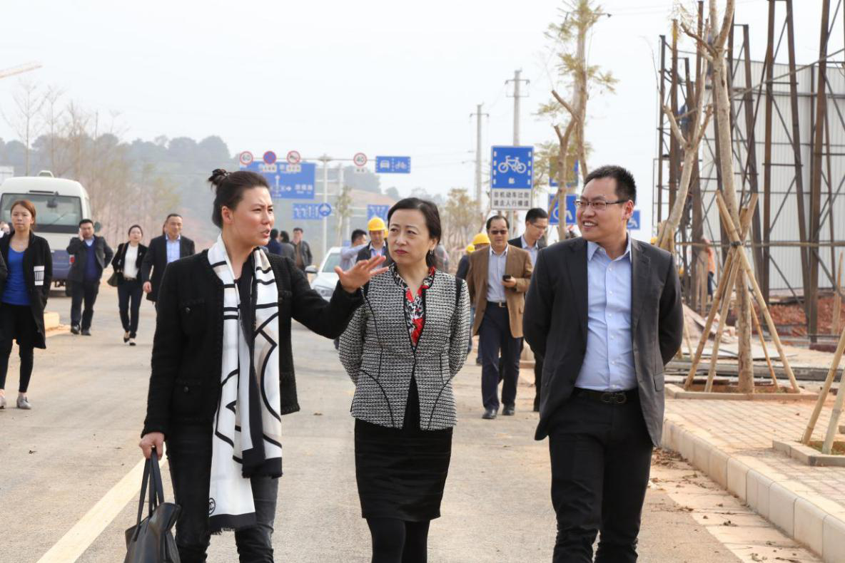 (圖為啟迪控股總裁袁桅參觀考察南寧市五象新區(qū)和南寧啟迪東盟科技城項(xiàng)目)