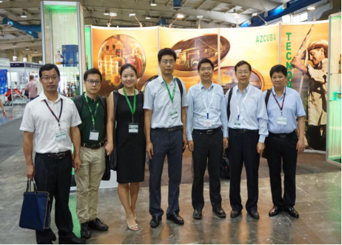(圖為廣西啟迪聯(lián)合廣西糖辦派團(tuán)參加古巴糖業(yè)博覽會(huì)進(jìn)行學(xué)習(xí)交流)
