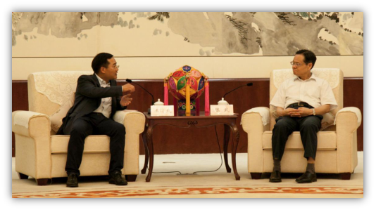 (圖為廣西自治區(qū)黨委常委、自治區(qū)常務(wù)副主席藍(lán)天立會(huì)見啟迪控股總裁袁桅)