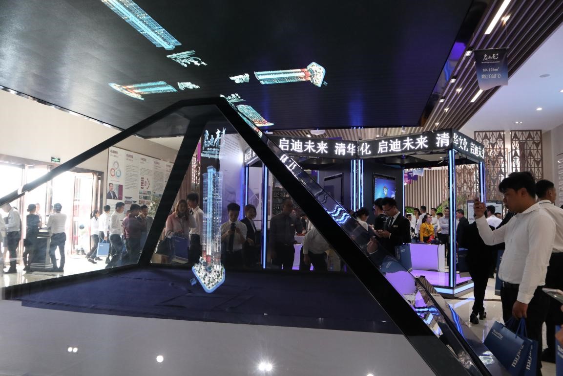 在活動正式開啟之前,啟迪亮置業(yè)顧問帶領渠道經(jīng)紀人參觀展示中心。啟迪亮展示中心內(nèi)人聲鼎沸,渠道經(jīng)紀人聽著啟迪亮置業(yè)顧問對啟迪板塊的詳細講解,明確了啟迪亮作為科技智慧人居社區(qū)的定位。他們駐足于全息投影沙盤前,分析著建筑的布局與方位;停留在戶型模型前進行熱烈地討論,深入地汲取項目信息;戴上VR眼鏡,近距離體驗高科技看房的魅力。