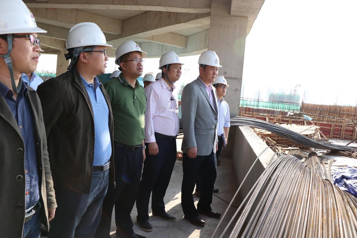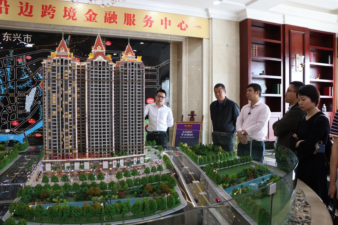 ▲ 領(lǐng)導(dǎo)們聽取東興市國門金茂大廈的區(qū)位介紹