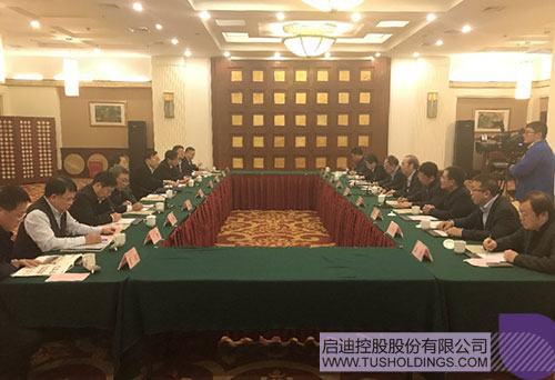 簽約儀式前,河南省常務副省長翁杰明會見國新控股董事長劉東生、清華控股董事長徐井宏、啟迪控股董事長王濟武一行,并共同出席見證簽約儀式。