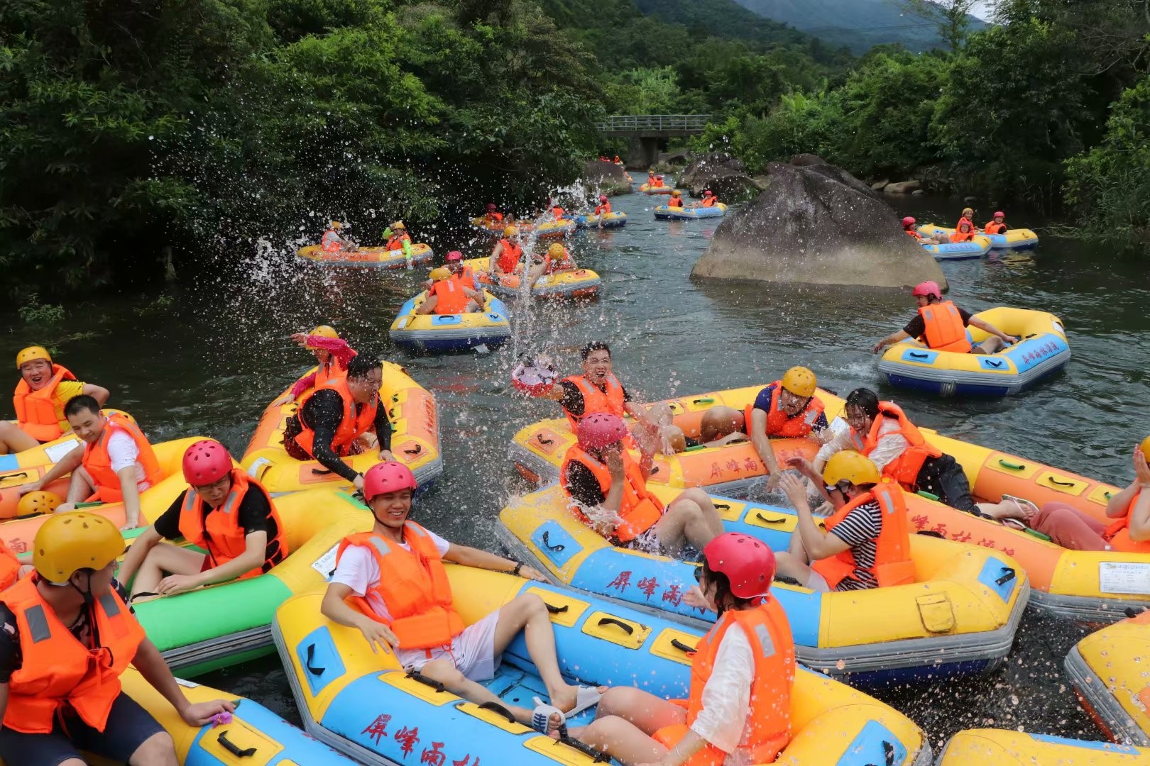 夜深之后,大家都回酒店去休息,第二天還是拓展活動的行程安排。第二天屏峰雨林的漂流,刺激有趣,在水上感受河流的張力和自然的怡然風光,最后每個人都筋疲力盡,徹底體驗到了淋漓盡致的痛快。