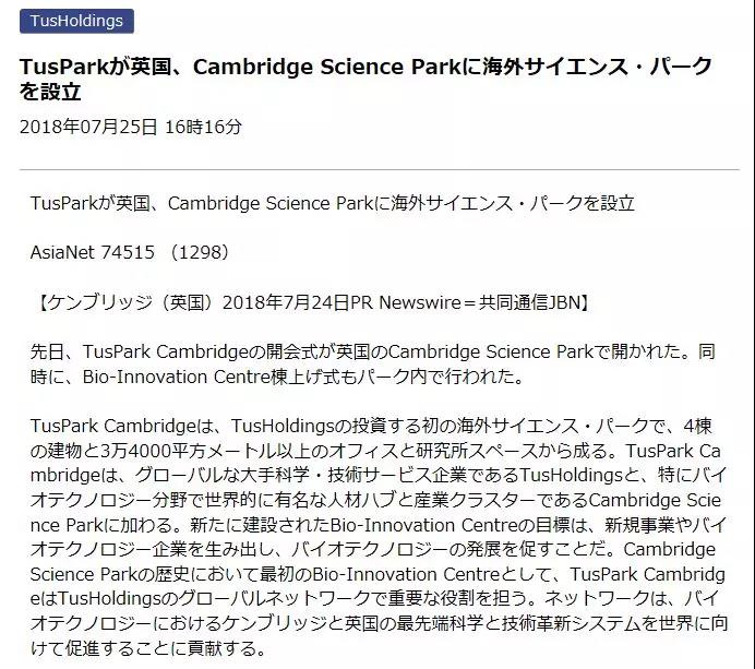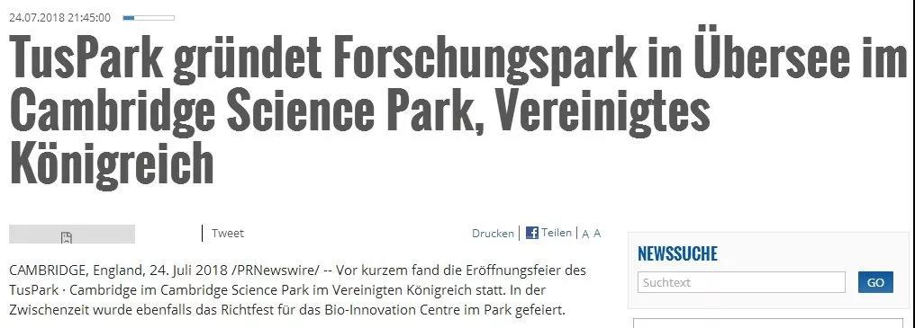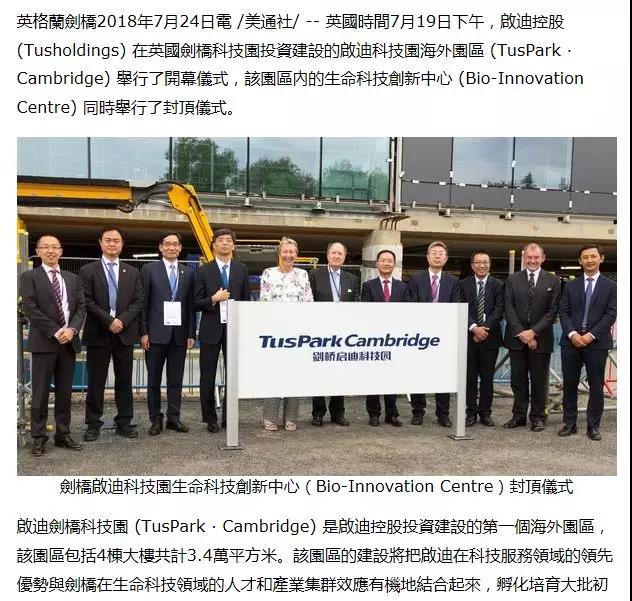 近日,由啟迪控股在英國劍橋投資建設的劍橋啟迪科技園(TusPark•Cambridge)舉辦開幕儀式和園區(qū)生命科技創(chuàng)新中心(Bio-InnovationCentre)封頂儀式,該活動在全球范圍內(nèi)引起廣泛關注,位于美國、法國、意大利、德國、英國、加拿大、瑞士、葡萄牙、俄羅斯、日本、新加坡、韓國、澳大利亞、印度、泰國、印度尼西亞、馬來西亞等國家和中國香港、澳門、臺灣地區(qū)的共計數(shù)百家媒體對此進行了不同形式的報道。