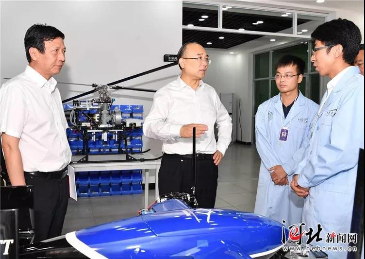 ▲這是許勤到清航裝備科技有限公司調(diào)研無人機(jī)項目。圖片來源:河北新聞網(wǎng)