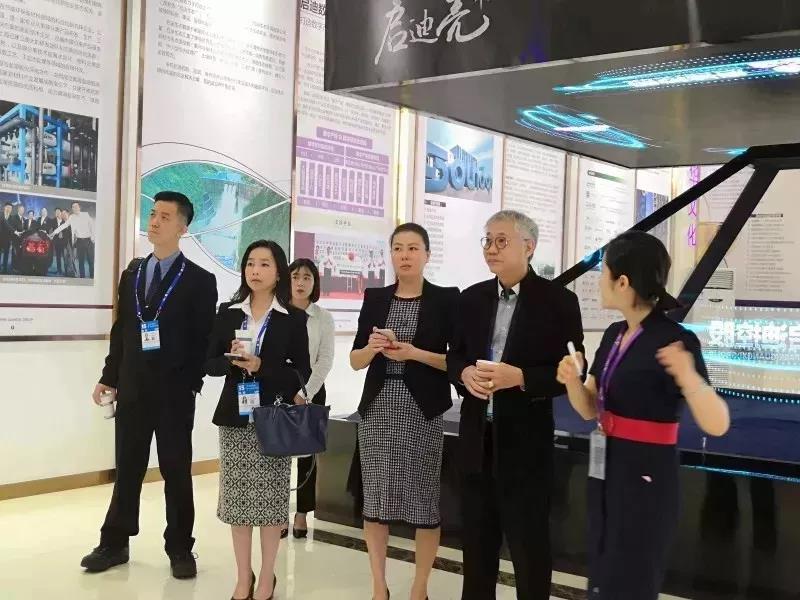 ▲東盟國際生態(tài)城教育中心院士何熾昌參觀啟迪亮展示中心