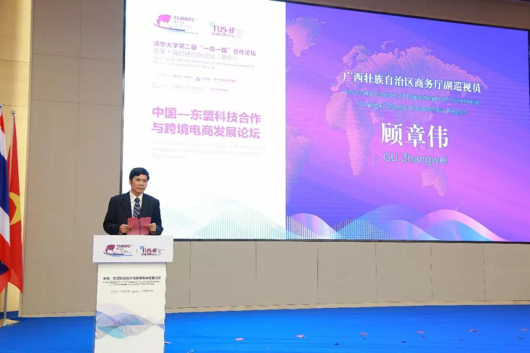 本屆論壇作為清華大學第二屆“一帶一路”論壇暨第十屆啟迪創(chuàng)新論壇的重要組成部分,由廣西自治區(qū)商務(wù)廳、科技廳支持舉辦,中國—東盟科技產(chǎn)業(yè)合作委員會與廣西啟迪科技城集團承辦,“一帶一路”沿線國家的政要、學者、工商界領(lǐng)袖、知名高校、科研院所代表,東盟各國駐華使領(lǐng)館官員、商協(xié)會代表和企業(yè)家代表,中國國際電子商務(wù)研究院、及阿里巴巴、京東等國內(nèi)知名互聯(lián)網(wǎng)領(lǐng)軍人物,廣西區(qū)內(nèi)物流、金融、產(chǎn)業(yè)園區(qū)等代表齊聚綠城南寧,共話科技合作與跨境電商發(fā)展。