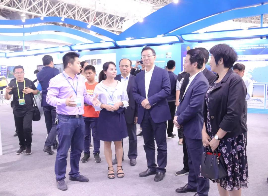 ▲ 湛江市科技局局長江向陽親自在湛江啟迪展區(qū)介紹啟迪海洋信息平臺