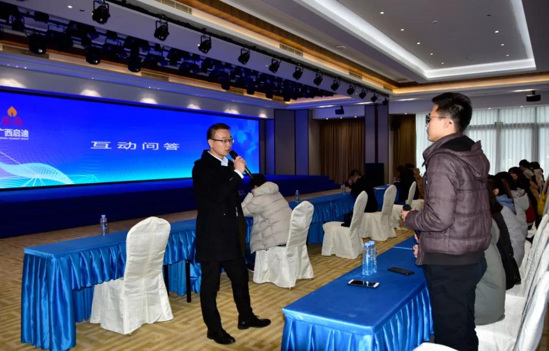 在互動(dòng)問答環(huán)節(jié)中,陸海云經(jīng)理對(duì)同學(xué)們提出的人力資源管理方面問題作了詳細(xì)解答,同時(shí)向大家介紹了廣西啟迪在人力資源管理中的亮點(diǎn)與特色,及舉例分享人力資源管理職業(yè)技能。方志明副總經(jīng)理就啟迪之星全球孵化網(wǎng)絡(luò)的搭建、啟迪之星(廣西)的建設(shè)運(yùn)營(yíng)情況以及啟迪之星“孵化服務(wù)+創(chuàng)業(yè)培訓(xùn)+天使投資+開放平臺(tái)”為核心的企業(yè)培育方式進(jìn)行了詳細(xì)介紹。