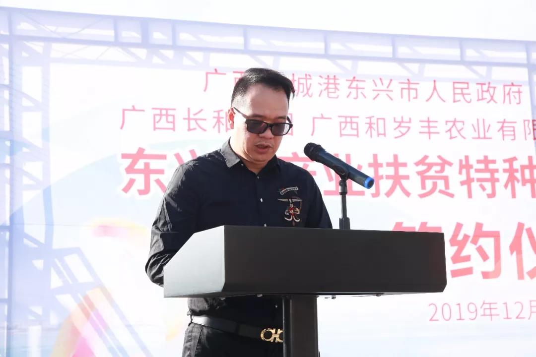 東興市委常委、東興市人民政府常務(wù)副市長黃巧玲出席簽約儀式并致辭。她表示,2019年,東興市在專項扶貧、行業(yè)扶貧、社會扶貧“三位一體”的大扶貧格局下著力推進(jìn)產(chǎn)業(yè)扶貧工程,不斷發(fā)展生產(chǎn),加強(qiáng)技術(shù)、產(chǎn)銷對接,延伸產(chǎn)業(yè)鏈,先后打造出一批農(nóng)業(yè)成名品牌,貧困群眾發(fā)展生產(chǎn)脫貧內(nèi)生動力和持續(xù)穩(wěn)定增收能力得到顯著提升。