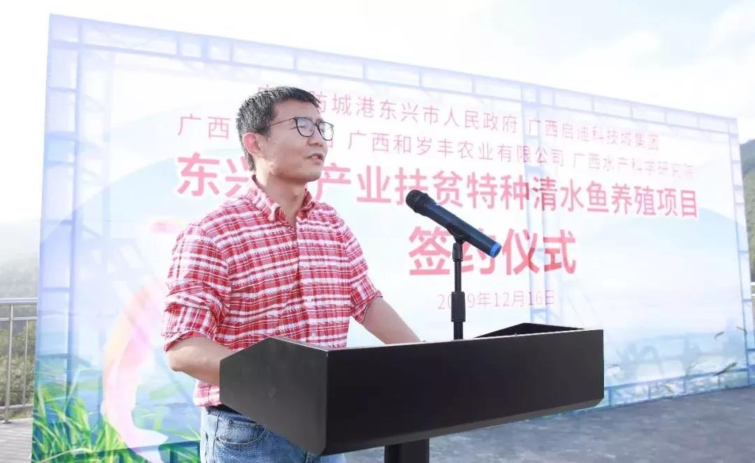 簽約儀式上,廣西水產(chǎn)科學(xué)研究院特色淡水魚綜合試驗基地主任肖俊對特種清水魚養(yǎng)殖項目進(jìn)行了推介。