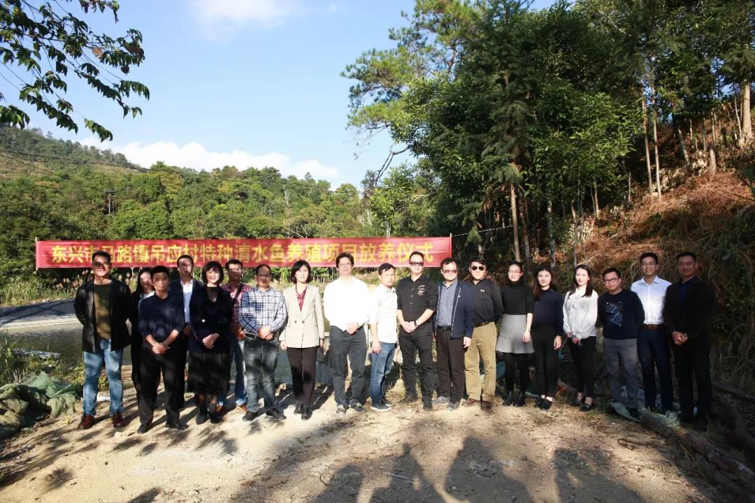 隨后,東興市委常委、東興市人民政府常務(wù)副市長黃巧玲,廣西啟迪科技城集團(tuán)副總裁曾慶,科技特派員、廣西水產(chǎn)產(chǎn)業(yè)服務(wù)團(tuán)團(tuán)長韋信賢,廣西長和集團(tuán)東興事業(yè)部總經(jīng)理裴春莉和廣西和歲豐公司副總經(jīng)理覃鴻毅等領(lǐng)導(dǎo)、嘉賓前往魚塘舉行魚苗放養(yǎng)儀式。