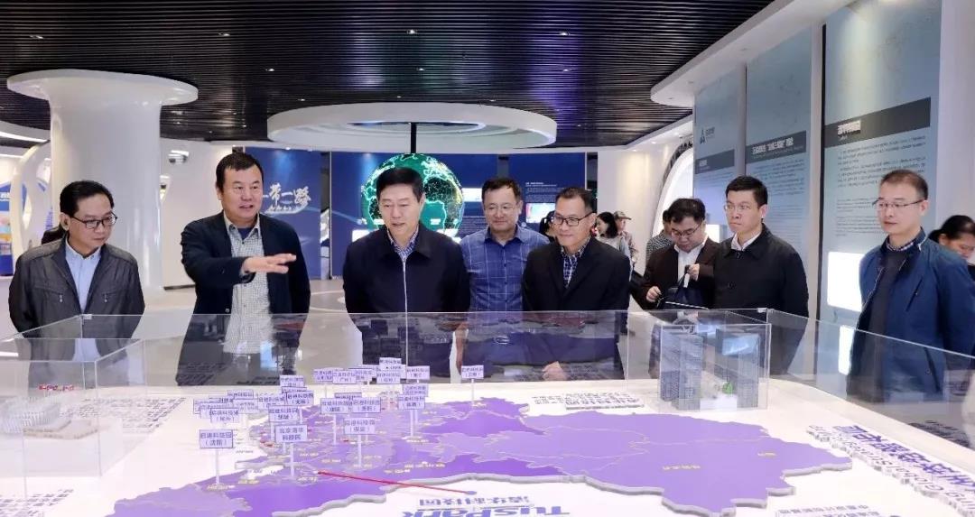 ▲ 錢健副廳長一行參觀南寧·啟迪東盟創(chuàng)新中心數(shù)字展廳