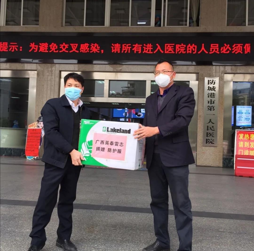 2020年2月19日,英泰雷志向作為收治新冠肺炎確診患者和疑似患者定點(diǎn)醫(yī)院的防城港市第一人民醫(yī)院捐贈(zèng)一批化學(xué)防護(hù)服,為抗擊疫情貢獻(xiàn)力量。